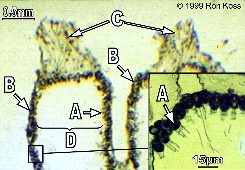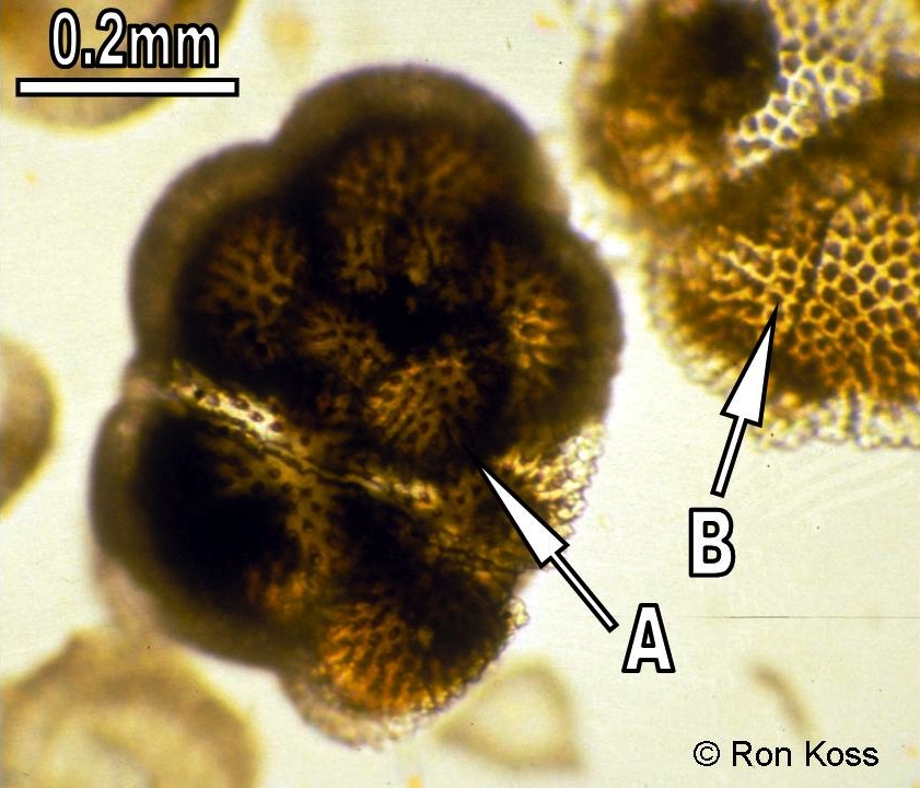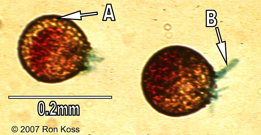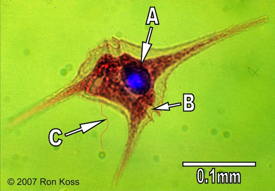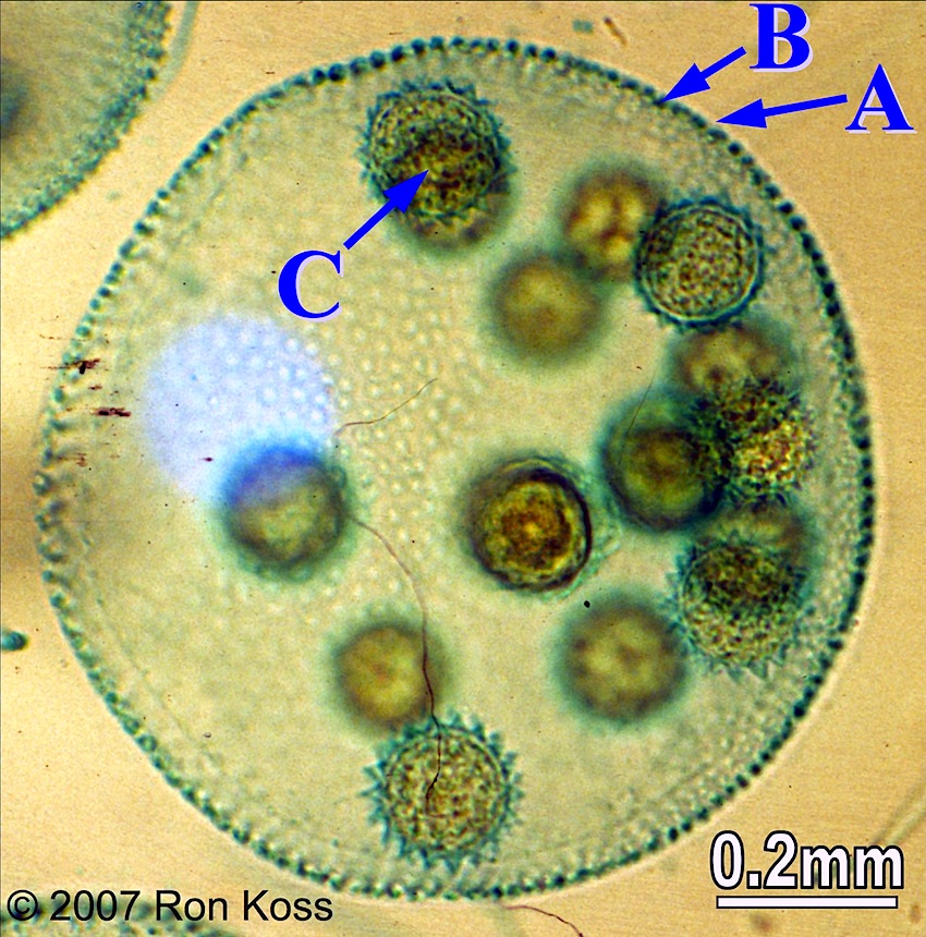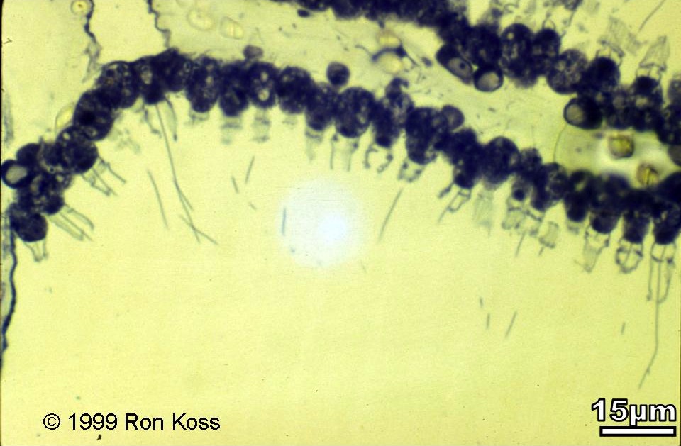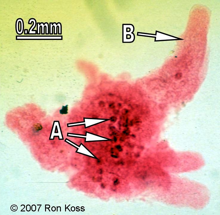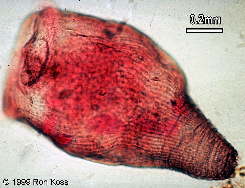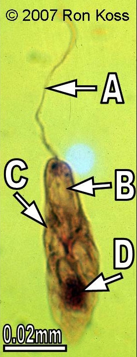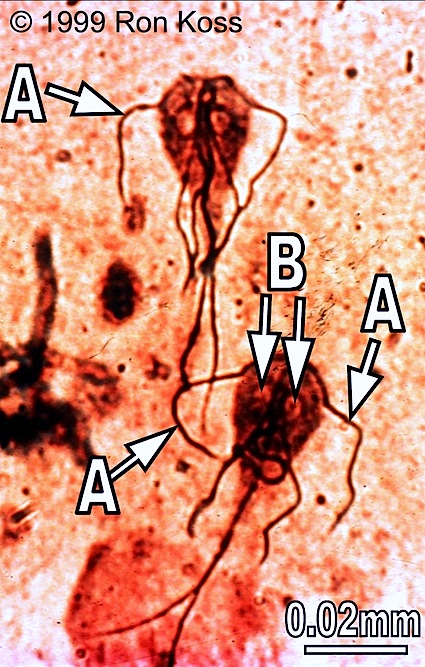 Test yourself by identifying the features labelled by arrows in these images. Can you name the higher taxonomic group to which each organism belongs? If not, use the key (for easiest use, hold the cursor down on the "key" link until you see the option "New Window with this Link"; this will open a second browser and allow you to view the key and the study image at the same time).