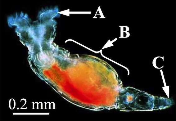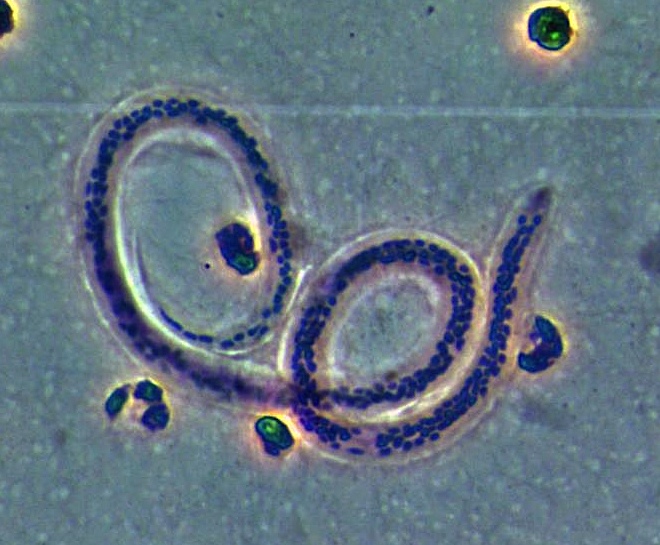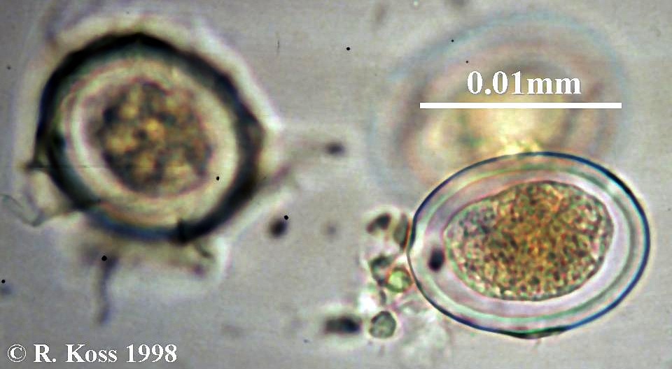 Test yourself by identifying the features labelled by arrows in these images. Can you name the higher taxonomic group to which each organism belongs? If not, use the key (for easiest use, hold the cursor down on the "key" link until you see the option "New Window with this Link"; this will open a second browser and allow you to view the key and the study image at the same time).