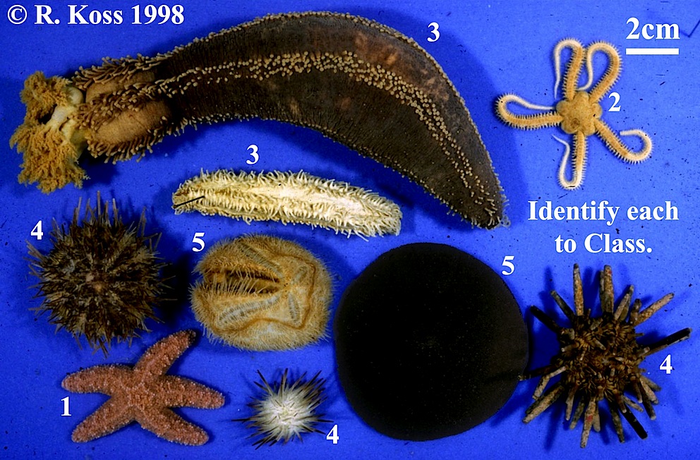 Lab 11 Study Images & Movies 2017 ECHINODERMATA, Other DEUTERSTOMES (click on tree to see full cladogram) |